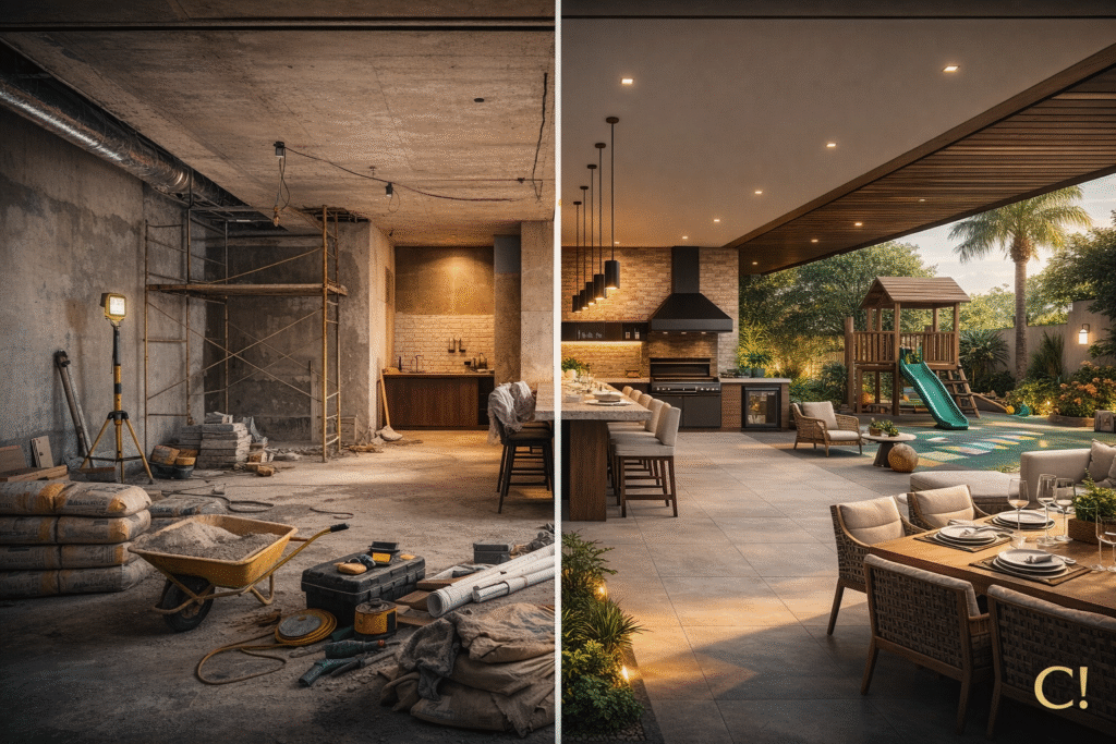 - Construção de nova área de lazer, salão, deck, sauna, academia etc.